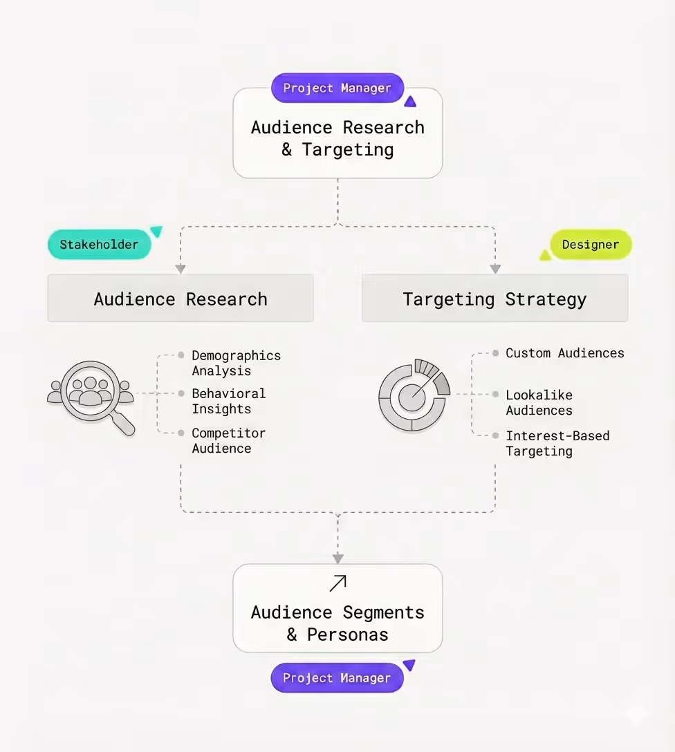 We align on business and marketing goals, target audiences, budgets, and success metrics to ensure campaigns are built around outcomes - not vanity metrics.